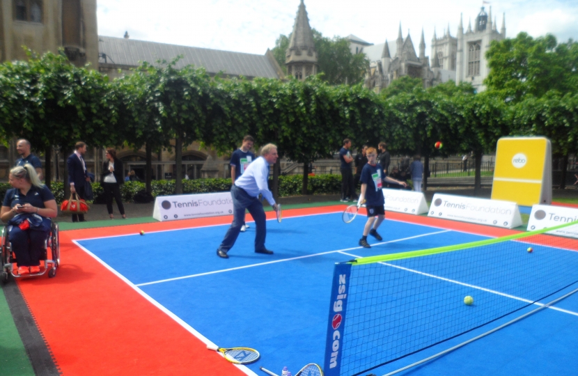 Rt Hon David Evennett, MP for Bexleyheath and Crayford and Minister for Sport, attended the Festival of Tennis event yesterday (28 June) in New Palace Yard in the Palace of Westminster.